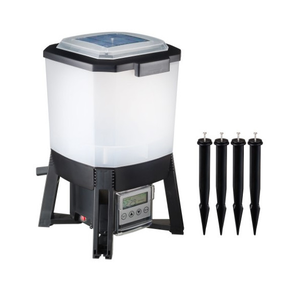 Az automata haletető Solar 6 l 1356100 praktikus megoldás a kerti tavak halainak rendszeres etetésére anélkül, hogy naponta jelen kellene lenni. A napelemes panel folyamatosan tölti az egységet, így nincs szükség hálózati áramra vagy gyakori akkumulátorcserére, ami ideálissá teszi olyan helyekre is, ahol nehézkes a kábelezés. A 6 literes tartály nagy etetési kapacitást biztosít, ami több etetési ciklust tesz lehetővé anélkül, hogy gyakran utántöltenéd. A programozható adagolási beállításokkal pontosan meghatározhatod, mikor és mennyit etessen a készülék, így optimalizálható a halak táplálása a szezon és az időjárási körülmények szerint. Az automata haletető Solar 6 l 1356100 különösen hasznos nyaralás, munka vagy hosszabb távollét esetén, mivel biztosítja, hogy a halaid időben és egyenletesen kapják meg a táplálékot. A stabil, kültéri kialakítás és az energiatakarékos működés megbízható, hosszú távú használatot tesz lehetővé. Ez az automata etető segít fenntartani a kiegyensúlyozott étrendet és a rendezett tavi környezetet.