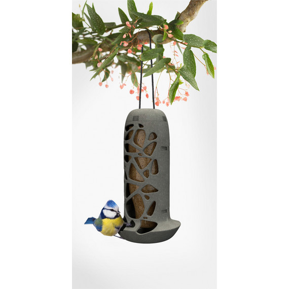 TARA 100%-ban újrahasznosított madáretető szürke, üvegpalackkal, újrahasznosított rPET kötéllel 13x13x25